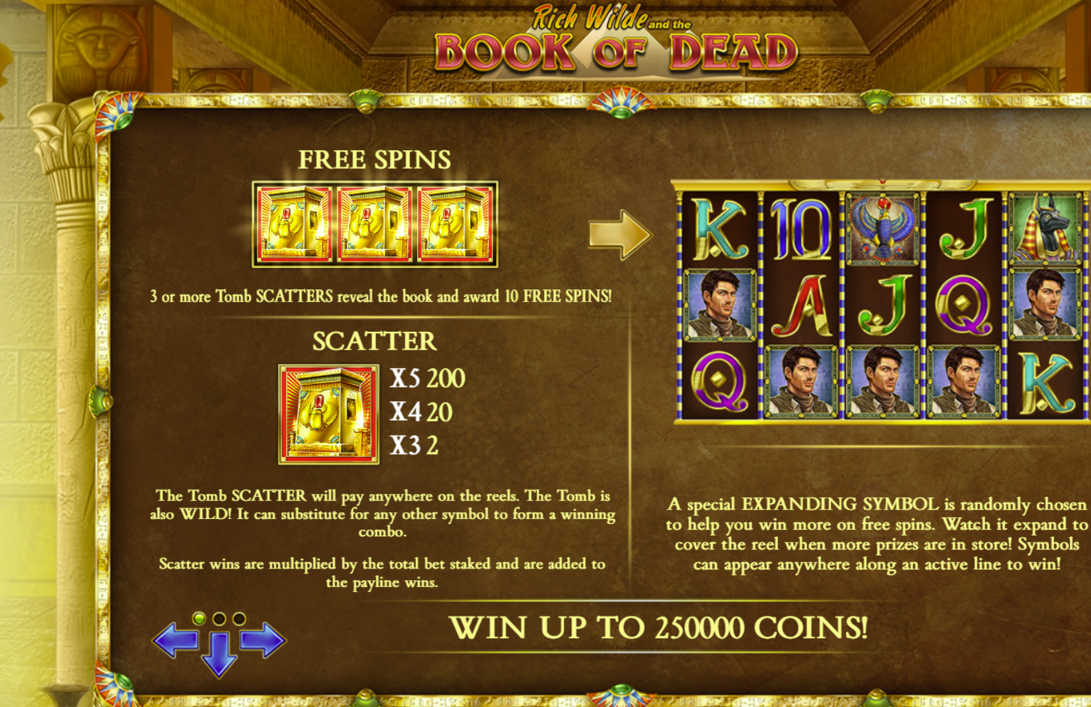 | Features | Book Symbol Wild/Scatter, Free Spins, Expanding Symbol |